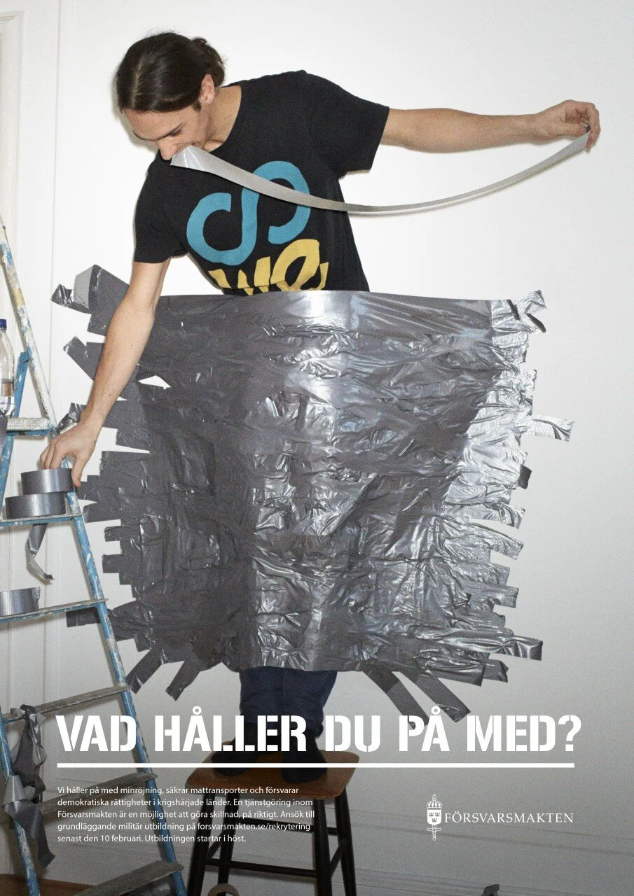 Rekryteringskampanjen ”Vad håller du på med?” syftade till att få människor att tänka efter vad de egentligen gör av sin tid, och föreslå något att ägna sig åt som innebär en chans att göra verklig skillnad. Att utbilda sig och tjänstgöra inom försvaret.